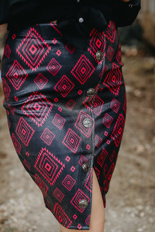 Pink & Black AZTEC OVERLAP FAUX LEATHER SKIRT