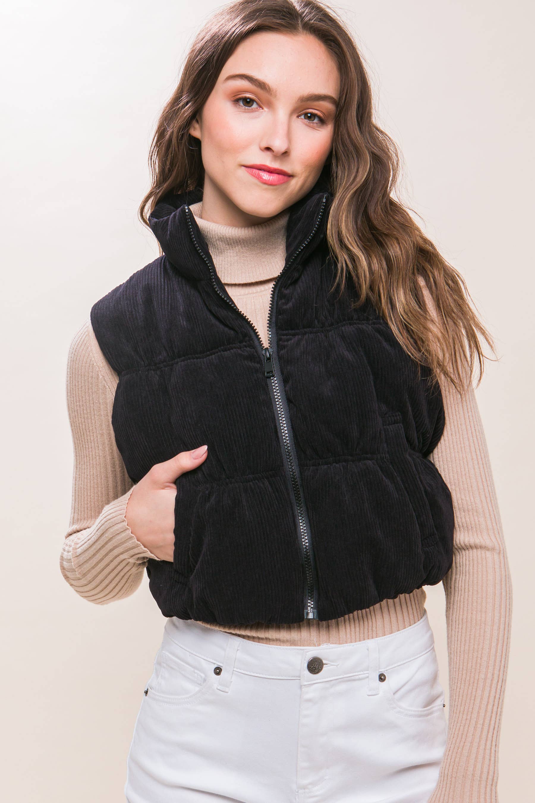 Corduroy Zip Up Puffer Vest with Pockets Material: 90% POLYESTER, 10% NYLON
