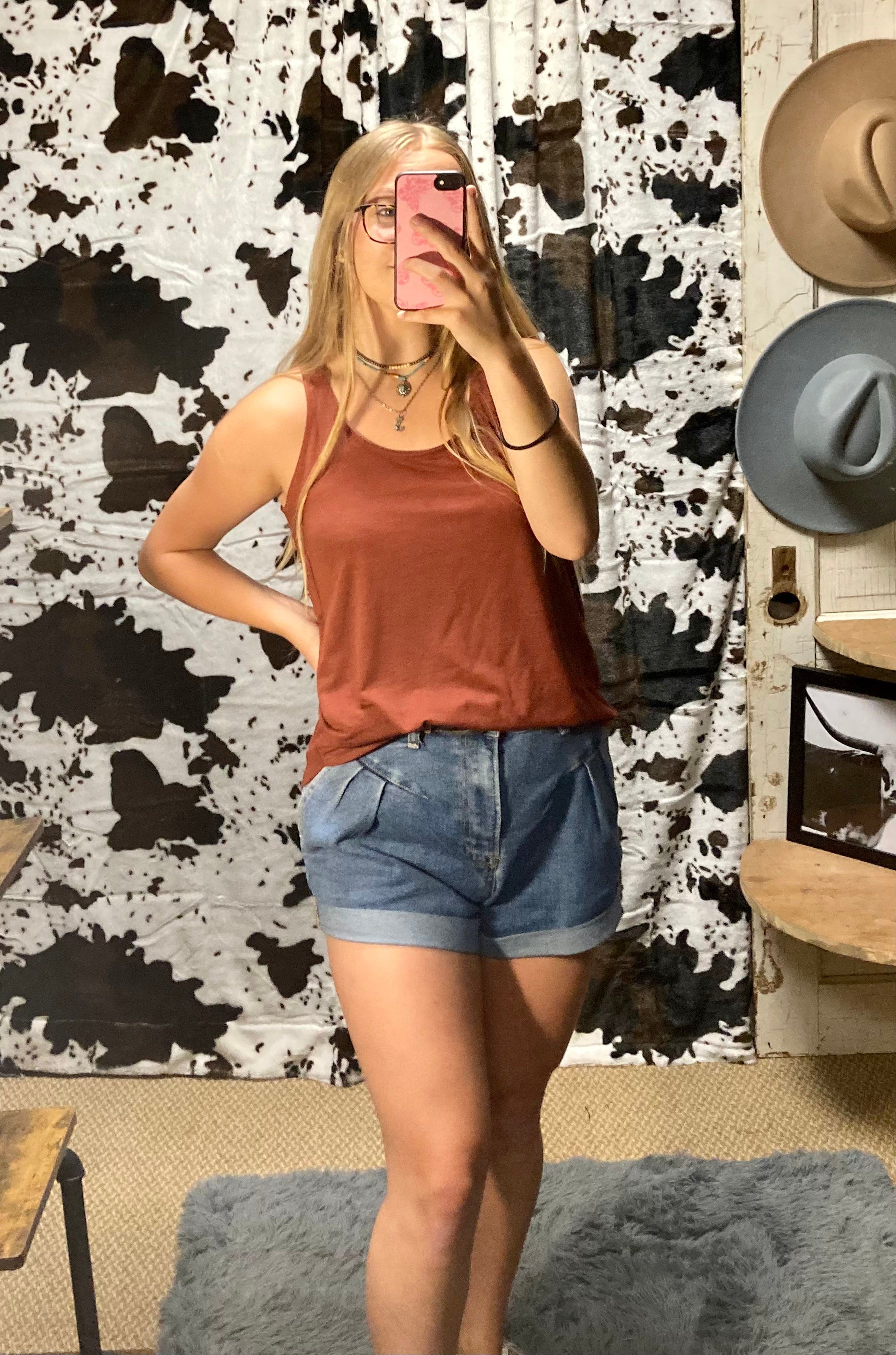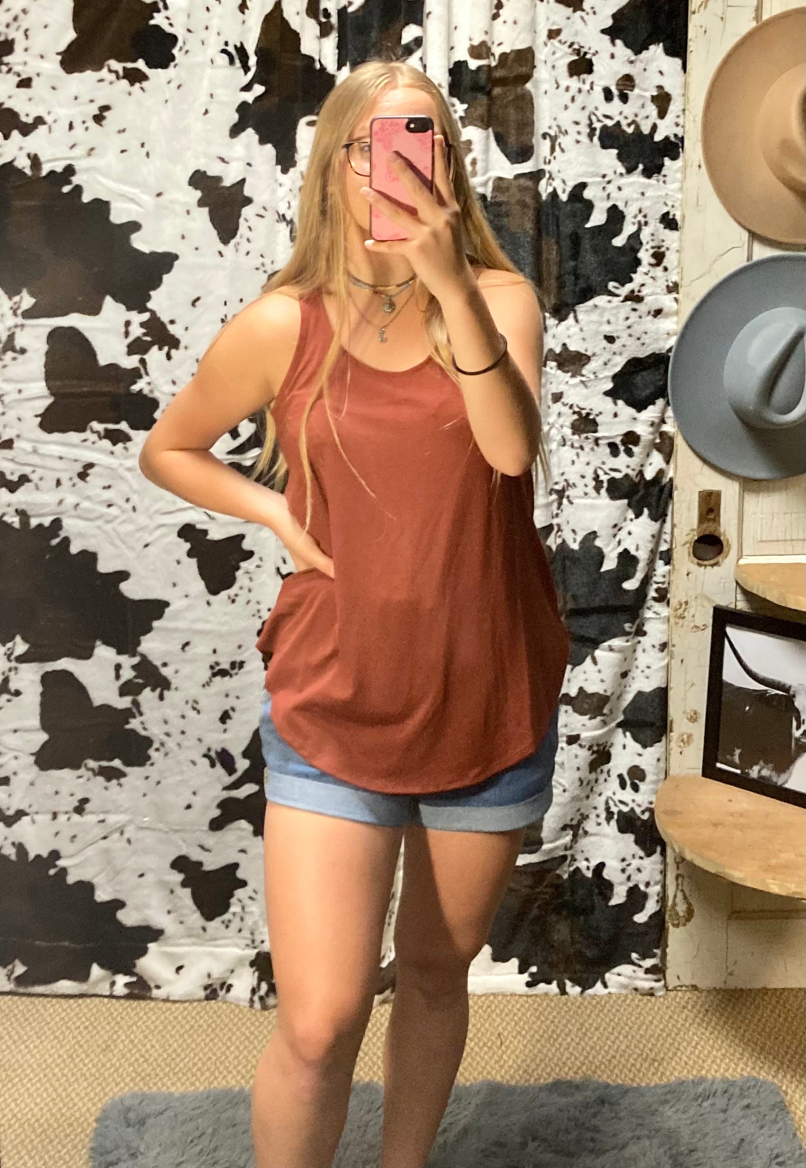 SLEEVELESS ROUND NECK & ROUND HEM TOP - RELAXED FIT - PERFECT TANK - BEST QUALITY TOTAL BODY LENGTH: 28.5", BUST: 35" approx. - Measured from SMALL