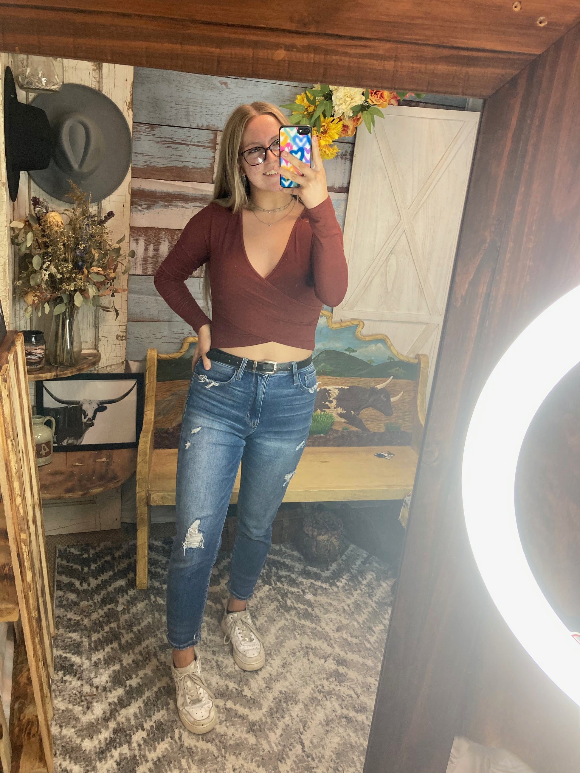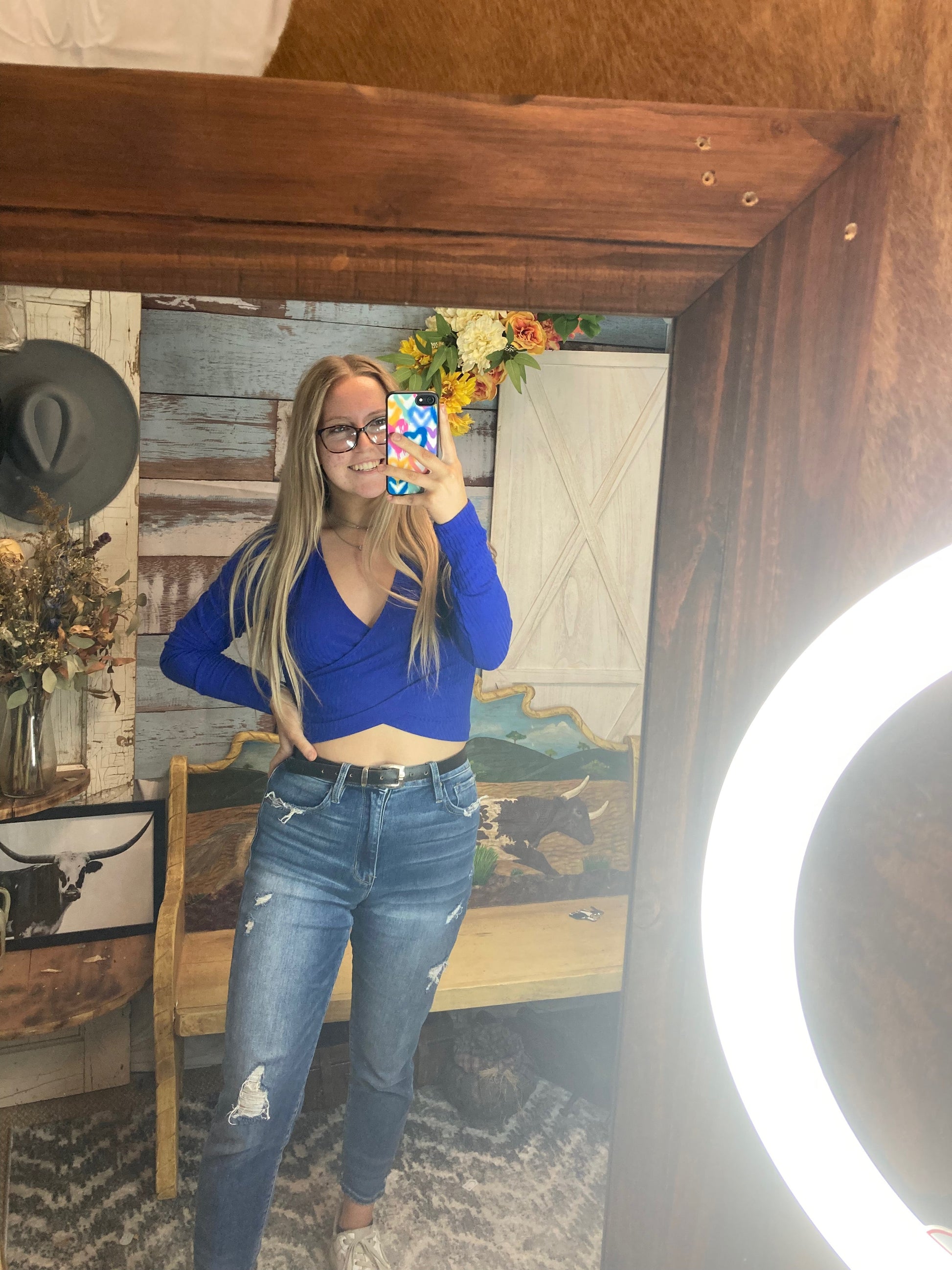 This wrapped cropped shirt will have you feeling and looking your best! These shirts are super flattering and have some stretch to be extra comfy!